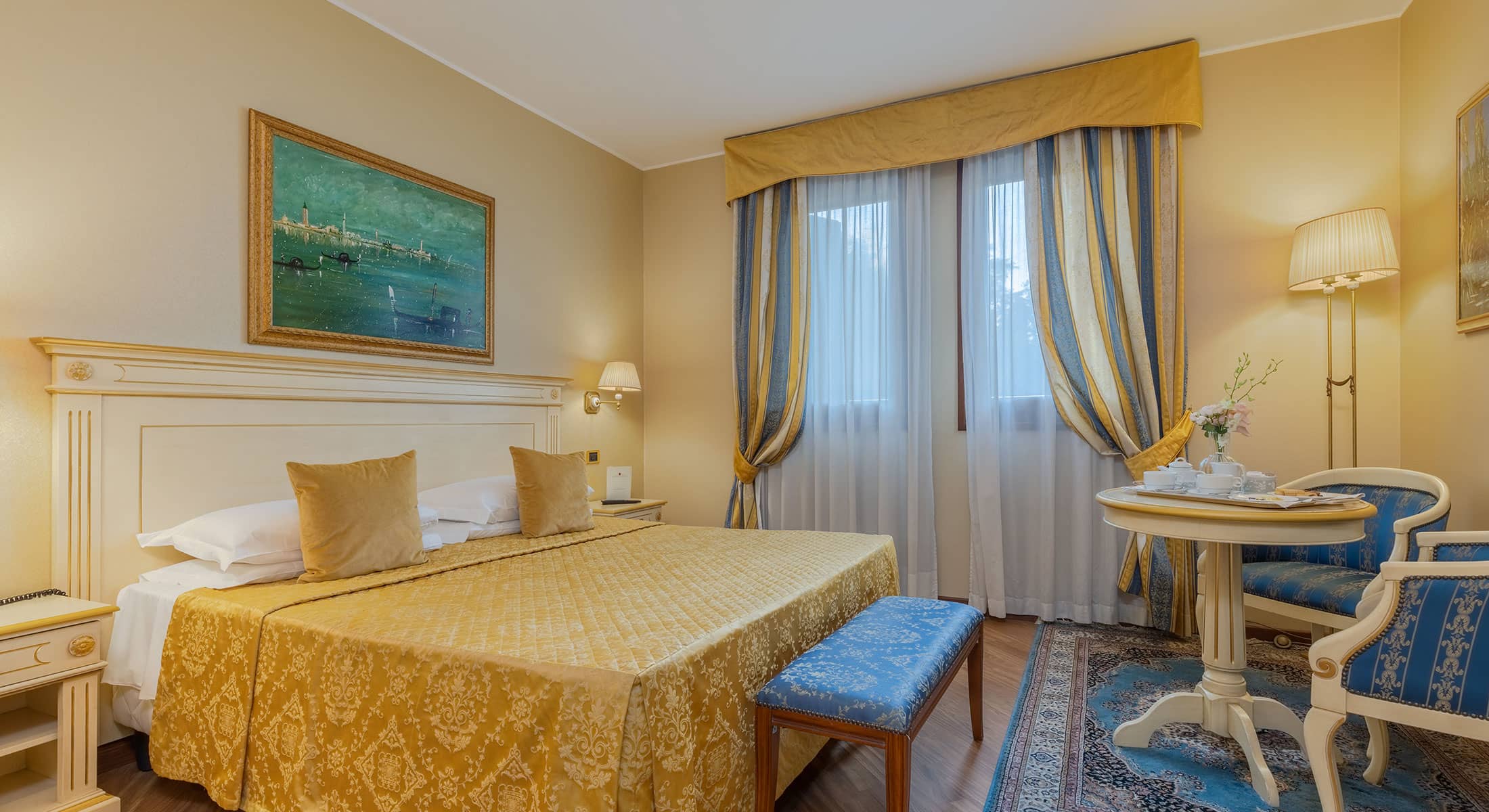 28 m², lit double ou 2 lits simples, parquet, Wi-Fi ADSL gratuit, télévision LCD, climatisation, mini-bar, salle de bain privée. Située dans la villa historique d’origine de l’hôtel. Pour une ou deux personnes. Dans cette chambre, vous pouvez revivre des émotions magiques et romantiques du passé.
